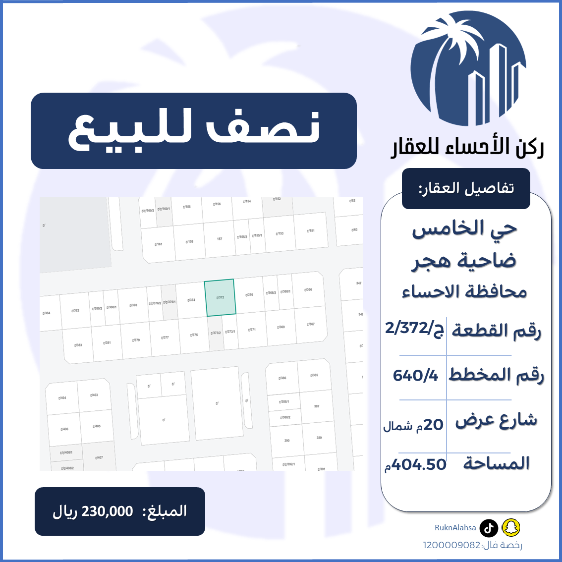 صور الوحدة | نصف أرض للبيع - أرض للبيع - هجر الخامس | ركن الاحساء للعقار